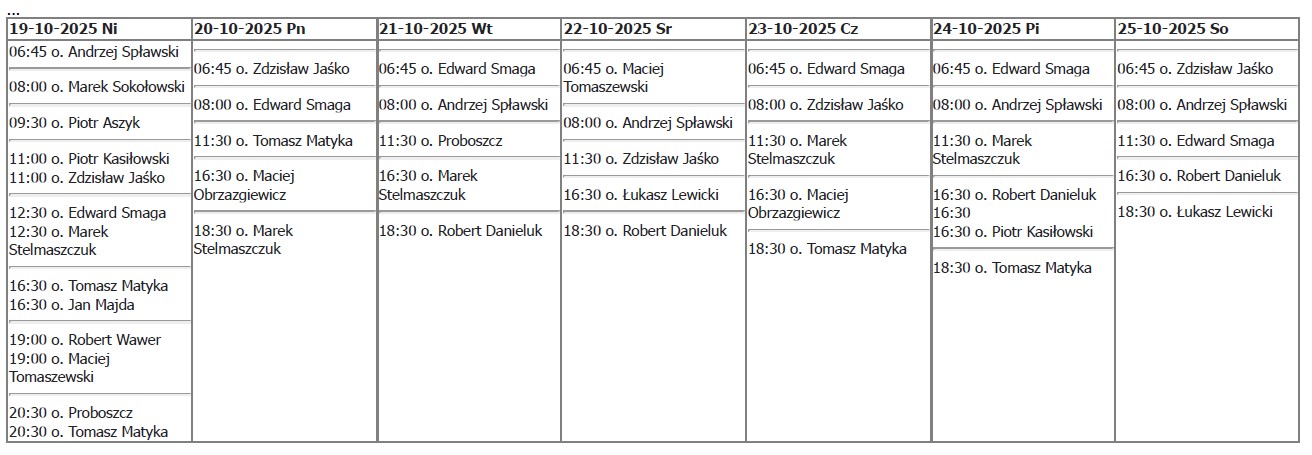 niedziela: 30 min. przed każdą Mszą św. w sanktuarium